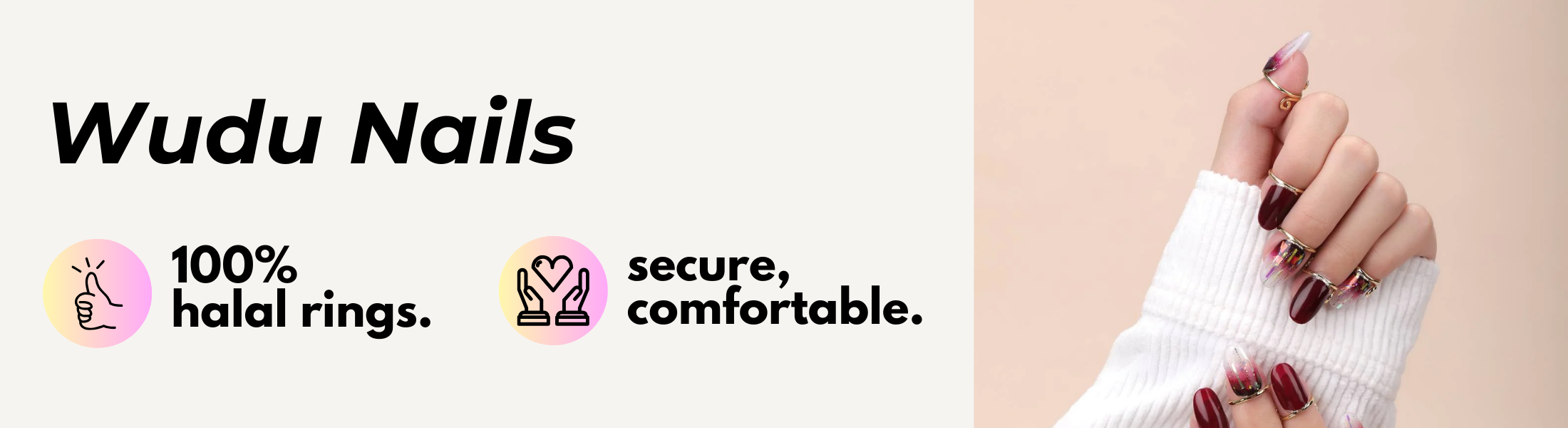 Wudu Nail Rings: a smart accessory for Muslim women balancing style and religious practices. These innovative rings, designed for easy on-and-off wear, cater to the essential Islamic ritual of wudu, ensuring purity before prayers without giving up on fashionable nails.